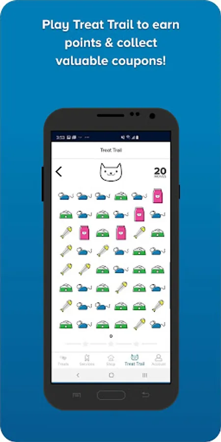 • Play Treat Trail – connect treats, earn points & get coupons