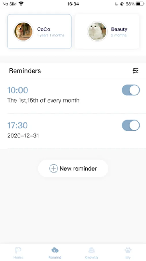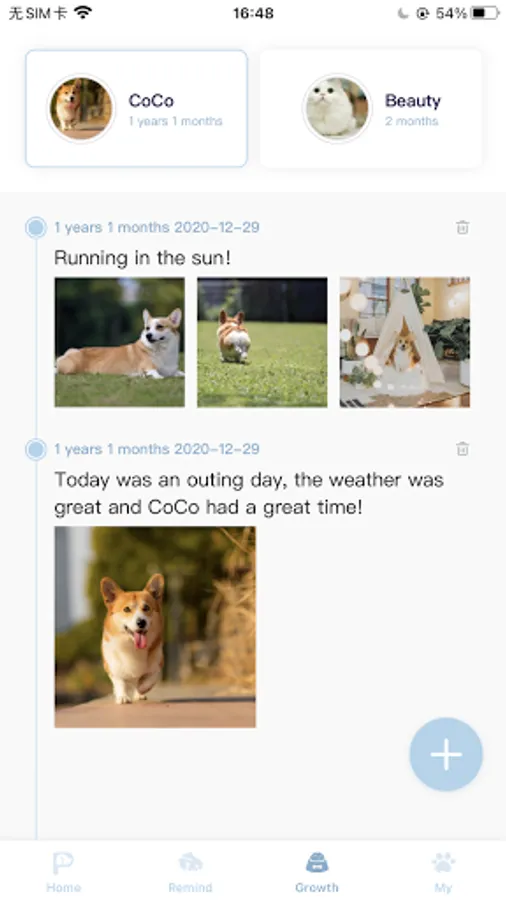 Tap the "+" button and start to record interesting moments for your pets in their growth.