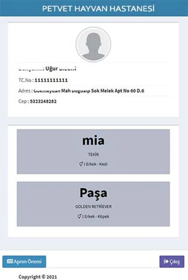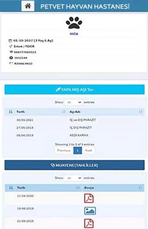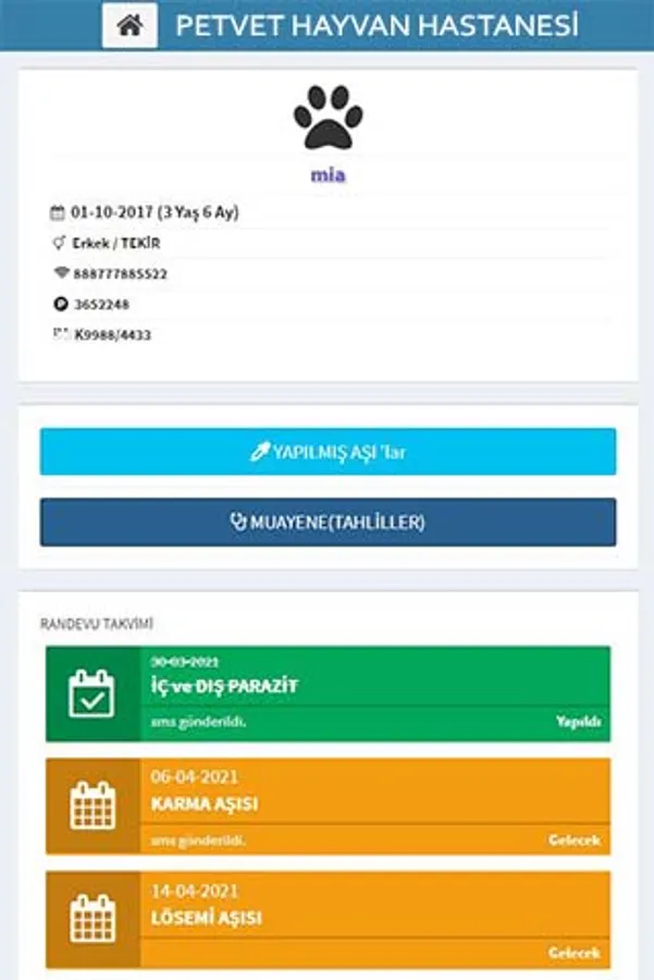 Petvet Animal Hospital patient/vaccine follow-up program (Only our registered patients in our clinic can use it).
