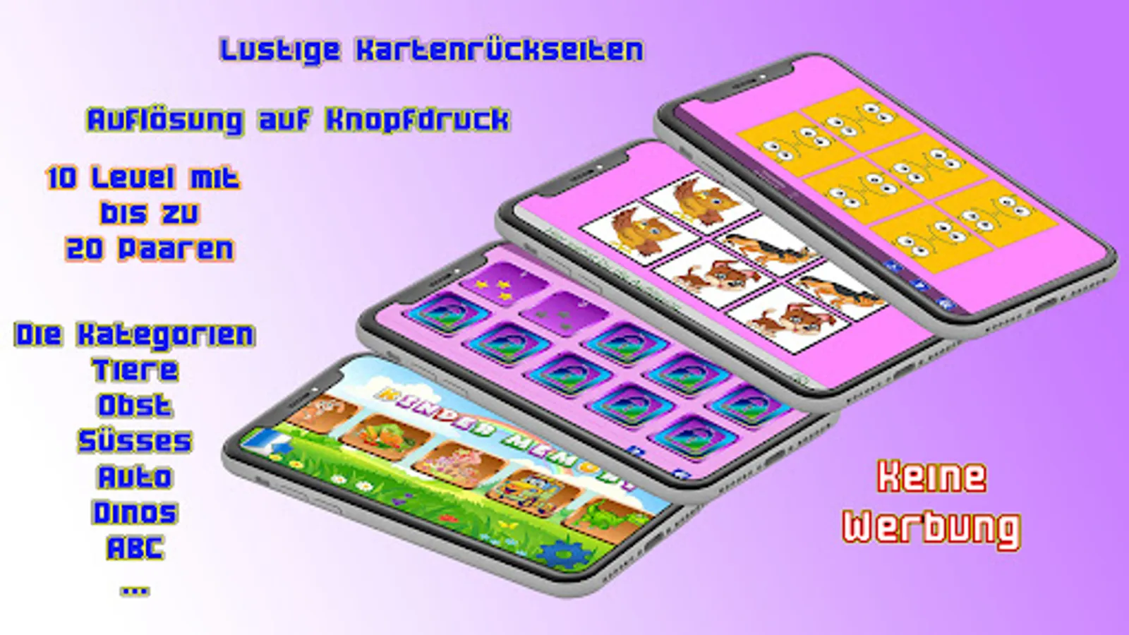 Welcome to Memory Kids - the ultimate memory game for kids aged 3+! This app offers a relaxing and fun way for kids to train their memory and logical thinking by finding matching pairs of pictures.