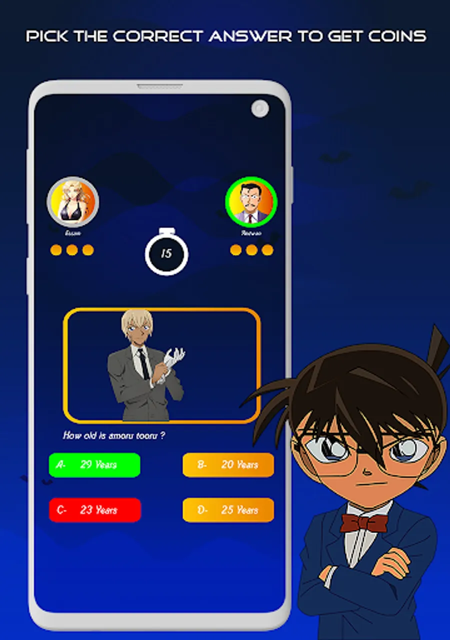 Become zero is a trivia game that challenge your knowledge in detective Conan , try to achieve the "zero" title and become the number one player on leaderboard and unlock unique characters.