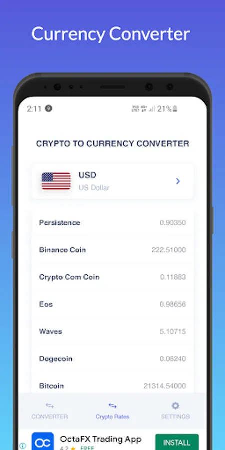 With Crypto And Currency Converter u can Convert any currencies or crypto currencies in real time rate. All Currencies and Crypto Currencies are available in this application.(USD, AUD, Bitcoin, Ethereum, Dogecoin etc)