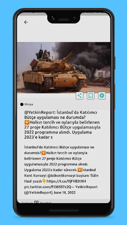You can reach the source link of the news by swiping the news you are curious about and read the whole thing.