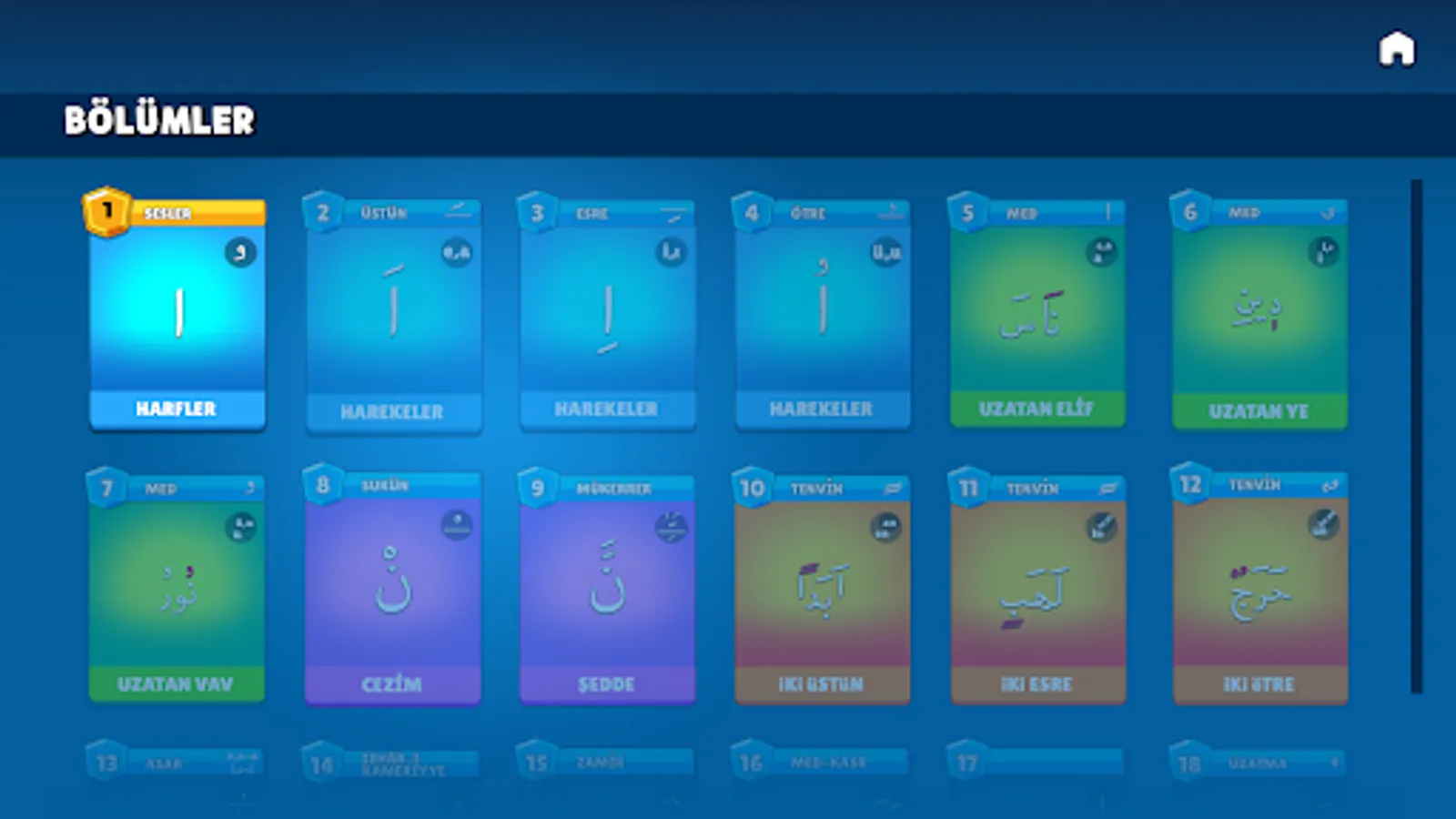 Harfler yarışması Elif Ba harfleri 5'er li bloklar halinde gruplara ayrılmıştır.
