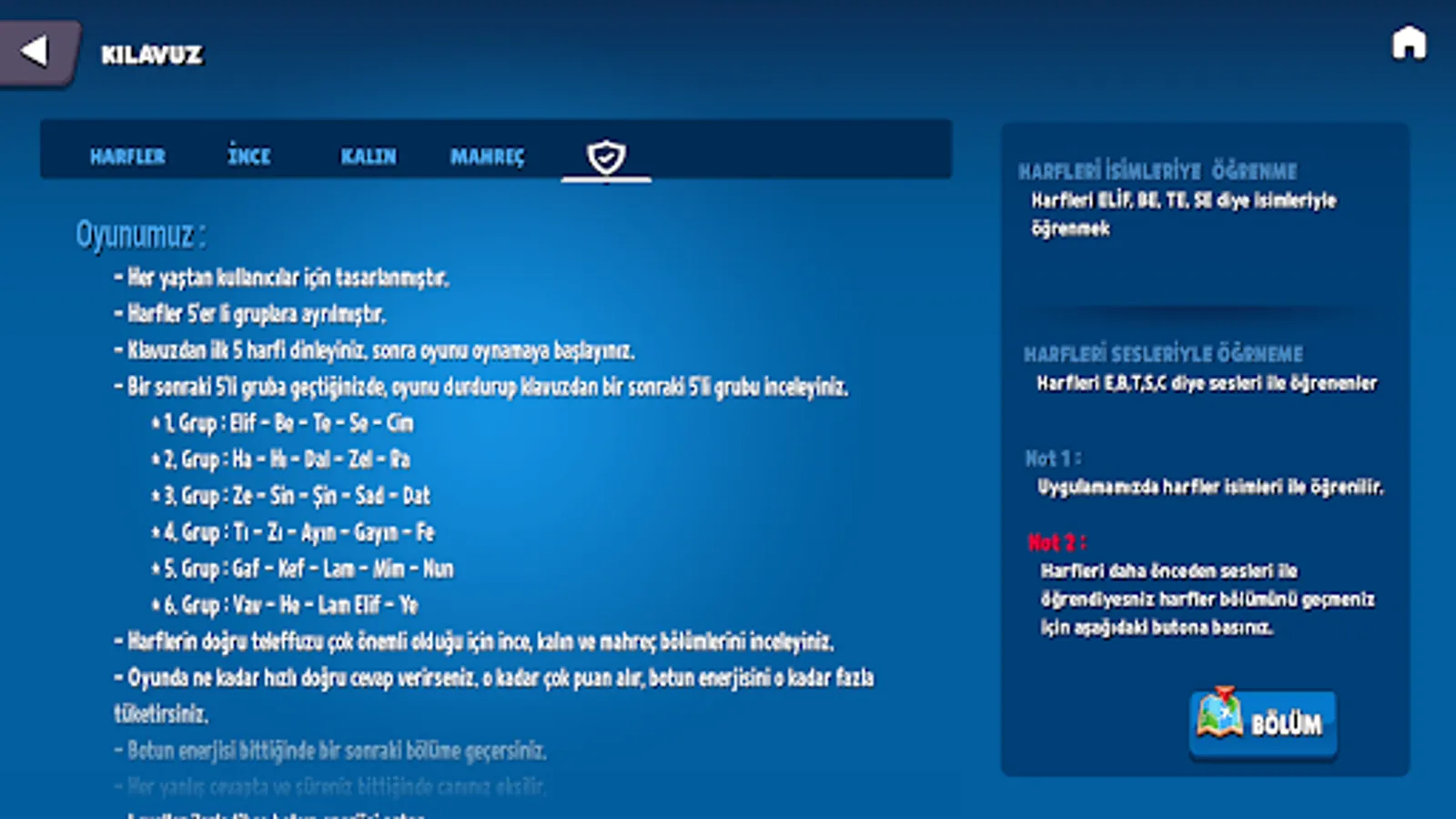 Tamamen ücretsiz ve reklamsız olarak tasarlanan bu oyun, Elif Bâ'yı eğlenerek öğretmeyi amaçlamıştır.