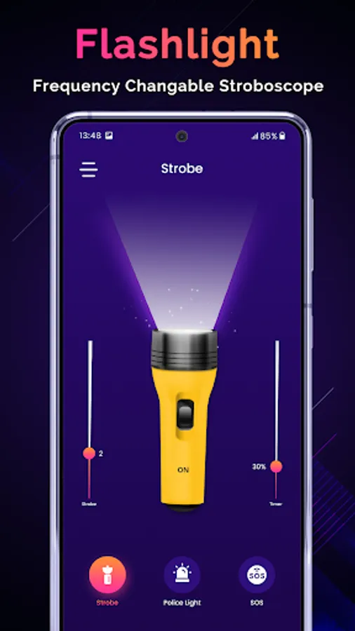 The stroboscope can have its frequency changed, ranging from really fast blinking to occasional ones. This quick start app can be customized according to your needs. You can change all the features of of this app according to your needs without any problem.