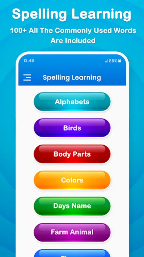 Spelling Learning helps to learn English spellings and improve their word power. The Spelling Learning Games : English Spelling Learning app enables a brand new method of spelling words. It brings as much fun as playing the game or simple drawing — but you learn the correct spelling and pronunciations meanwhile.