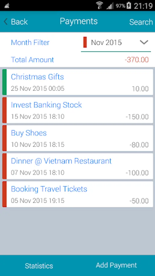 3. Generate Monthly Summary on Income, Outcome, Payment and Saving.