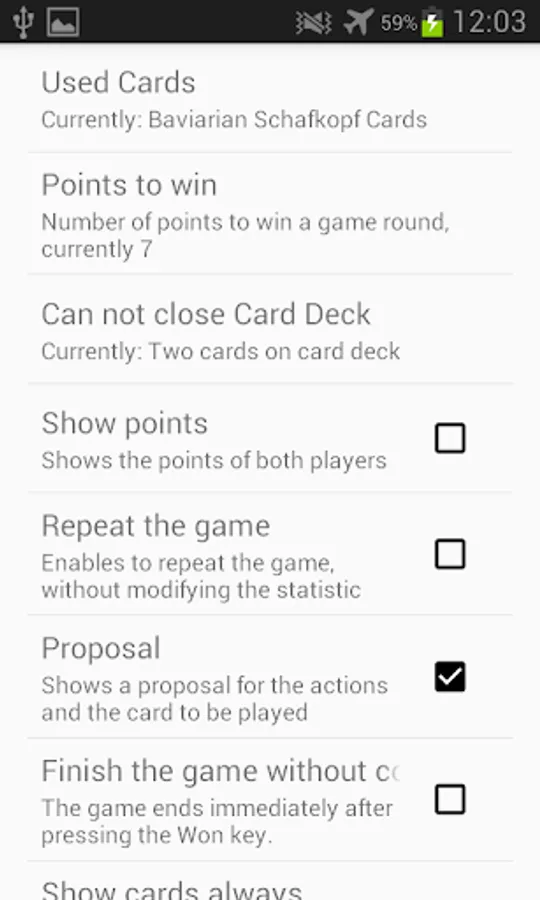 For the support of the players SixtySix Champion has options as point counting, playing with open cards, or getting proposals from the computer.