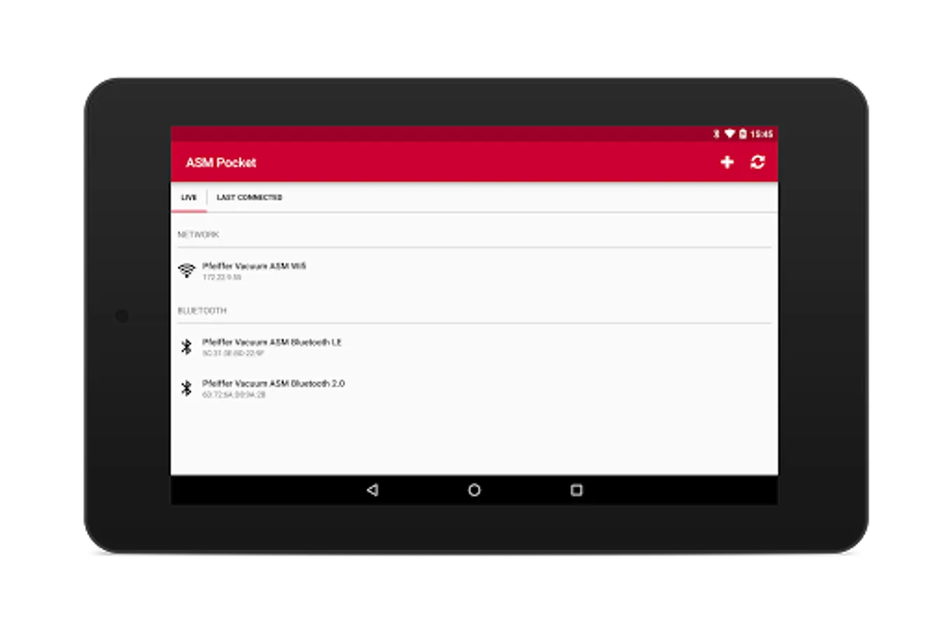 - Leak detector with integrated Bluetooth module or external Bluetooth transmitter (can be ordered from Pfeiffer Vacuum)