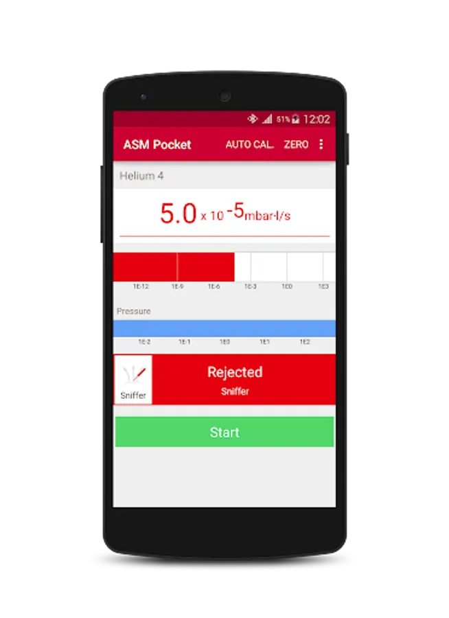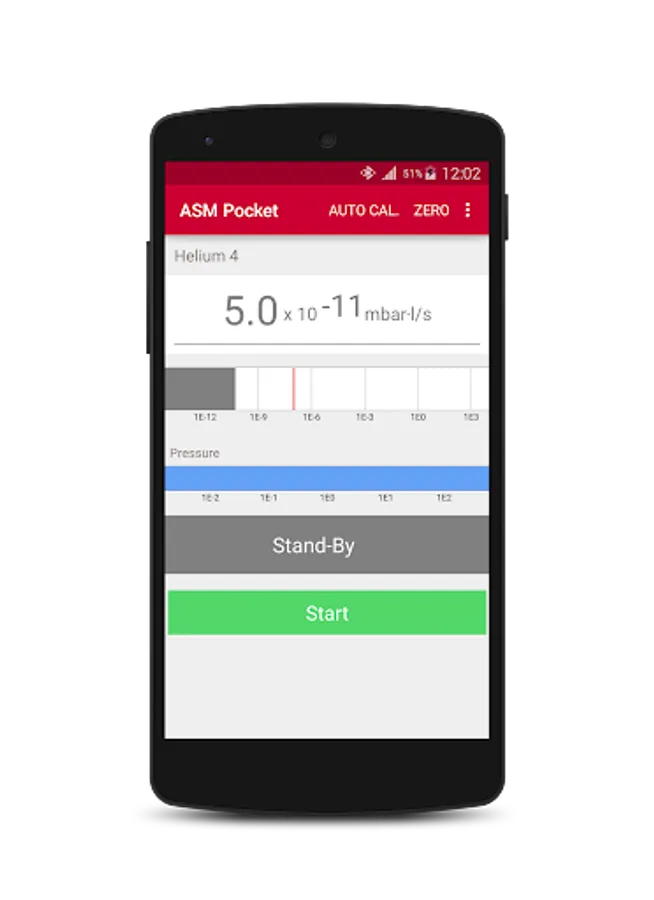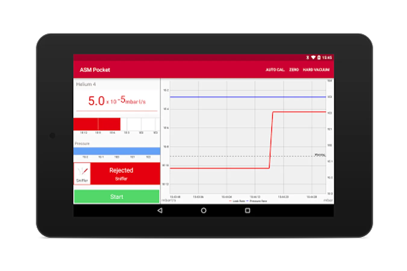 - Monitoring the leak rate and/or the inlet pressure (values and scale)