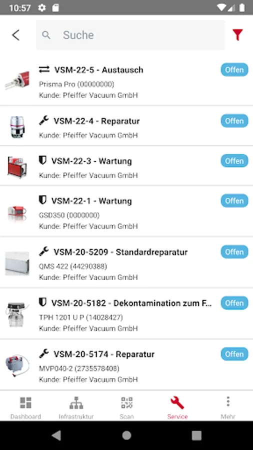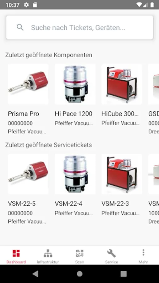 With the VSM application, you can organize locations, departments, machines and components in an infrastructure view in just a few steps.