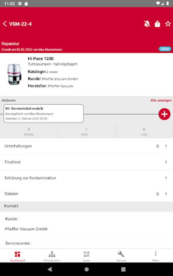 Maintenance and repairs can be documented and enriched with additional information. This quickly creates a clear history of your individual components.