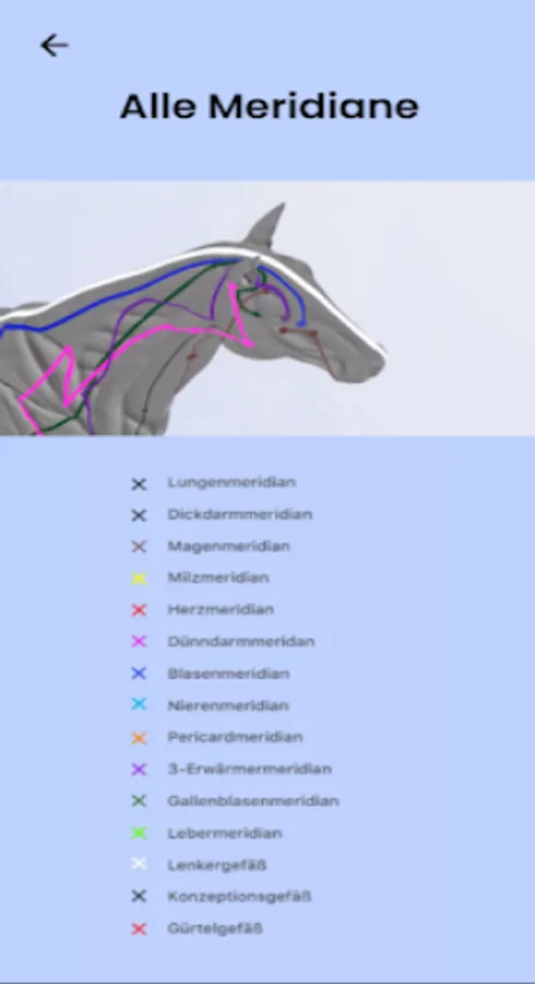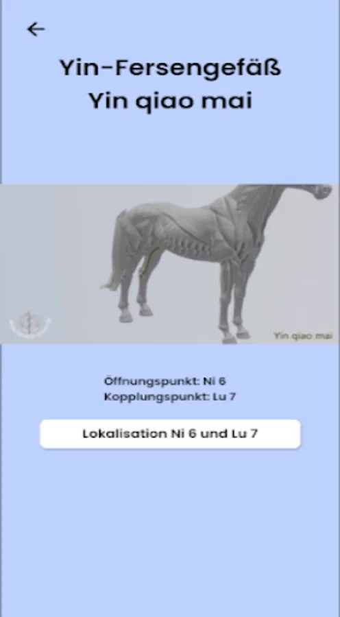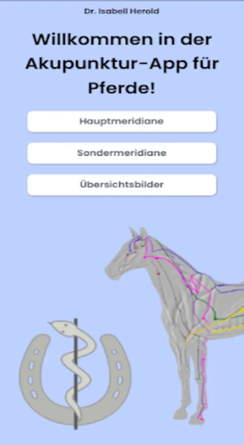the correct meridian and point can be looked up quickly and discreetly. In addition, you will also find overview images of the ting points and the points on the eye. In addition, this app contains a film showing all the meridians on a horse to clarify their relationship to each other. The expert dr. Isabell Herold, veterinarian specializing in acupuncture and neural therapy (A), developed this app as a result of her decades of acupuncture experience with horses.