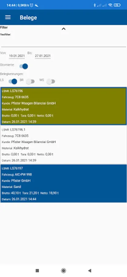Calling up & processing of WinWeigh yard list entries / wanted list or also completed documents: