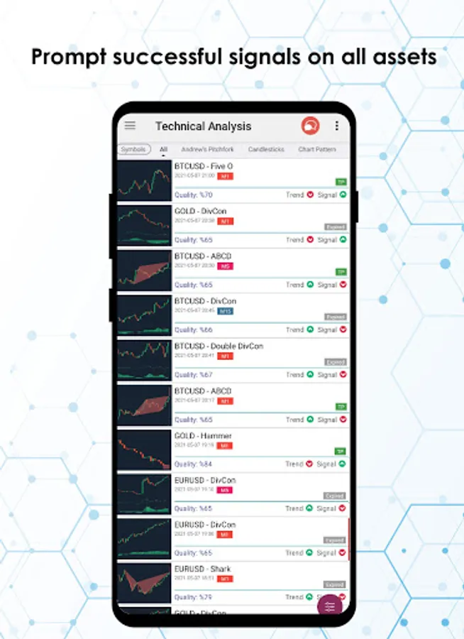 Traders can select their desired Trading Signals and Technical Analysis to receive instant notifications as chosen one is formed or at the time when price touches of Entry, Take Profit and Stop Loss prices.