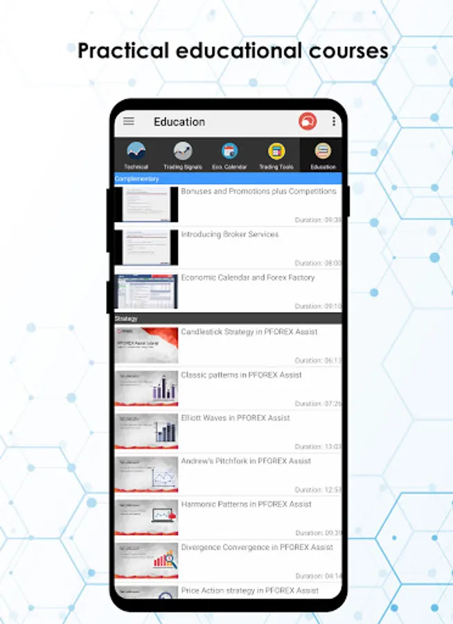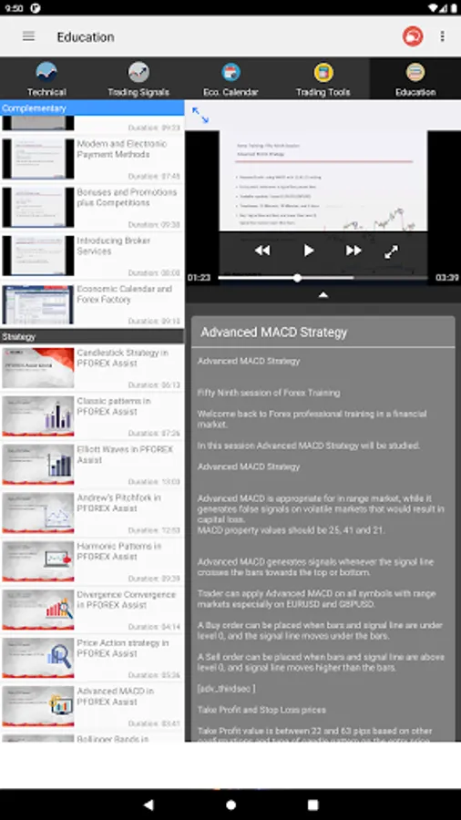 Each category has multiple sessions in which traders can acquire highly beneficial knowledge to develop their trading skills and technique.