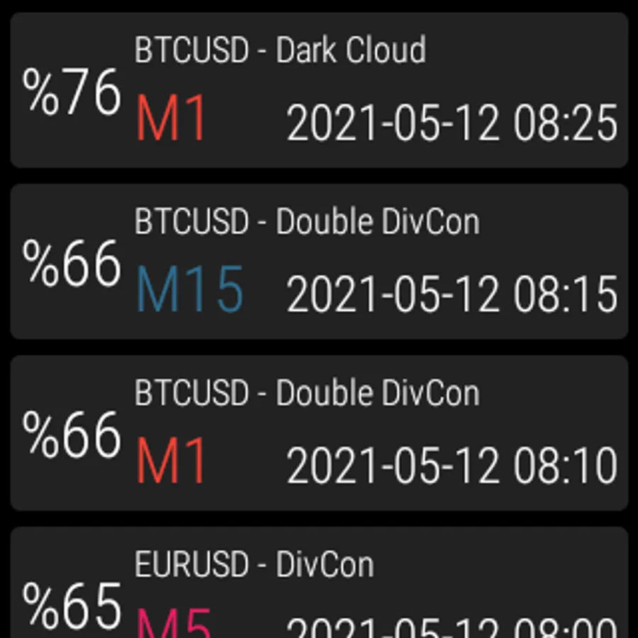 The App delivers the most recent trading signals based on your selected trading strategies INSTANTLY when the desired trading signals are formed.