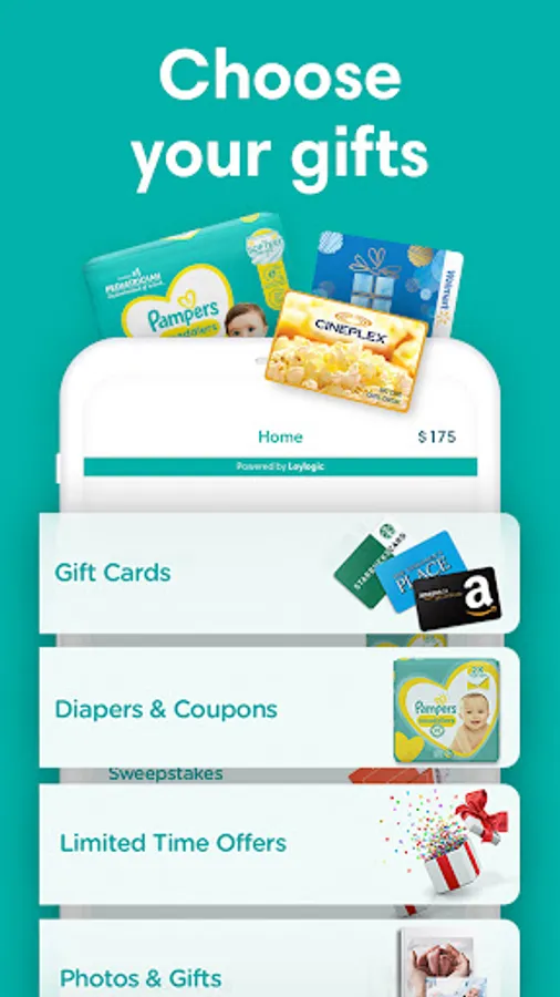 • Get digital vouchers, amazing gift cards, and diaper coupons!