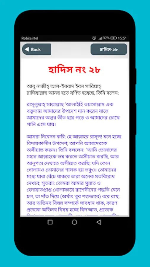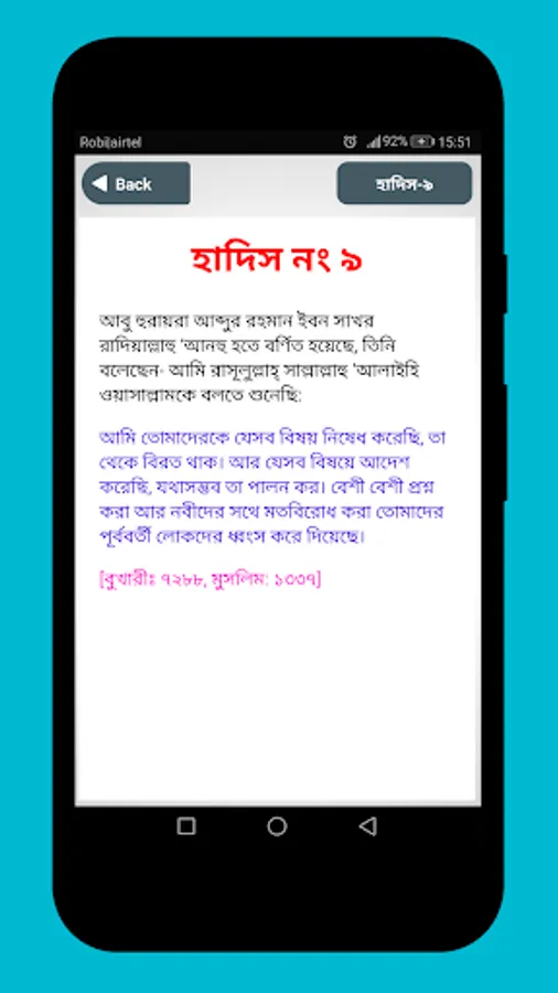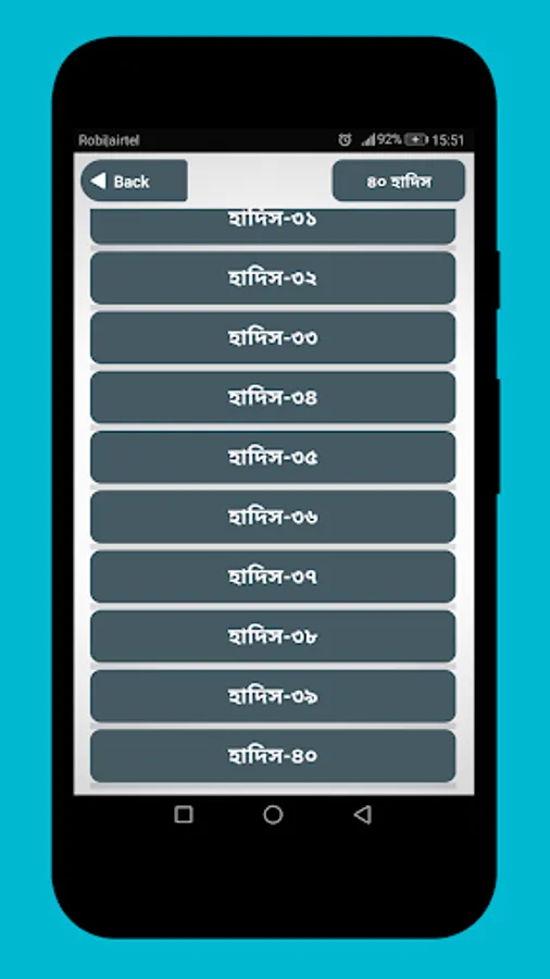 40 Hadith Bangla App is a bastion of Bangla Hadith Bangla hadis, which is selected by Imam Nawawi in several categories from Hadith Books. The Prophet (s :) of Prophetic life says all the words, work and approval is a hadith. Hadith is the second source of the provisions of the rules of the Islamic Shari'ah. The importance of the hadith is immense.