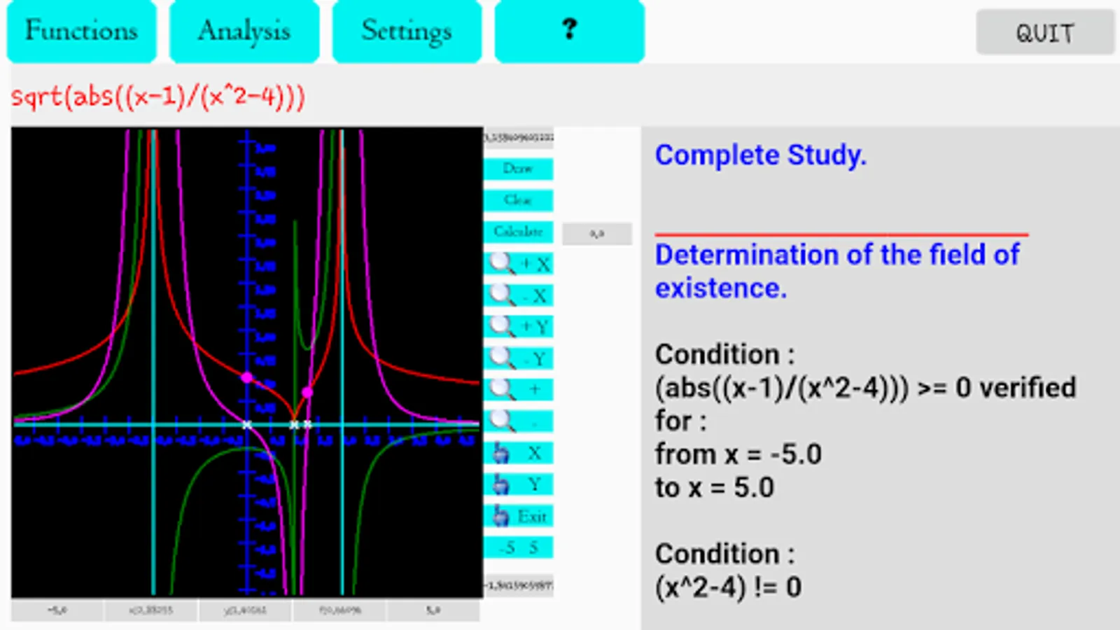 Study Functions ADS performs the complete study of a real function of real variable y = f (x).