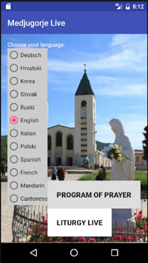 It allows you to browse the prayer program from official website of Medjugorje in the selected language.