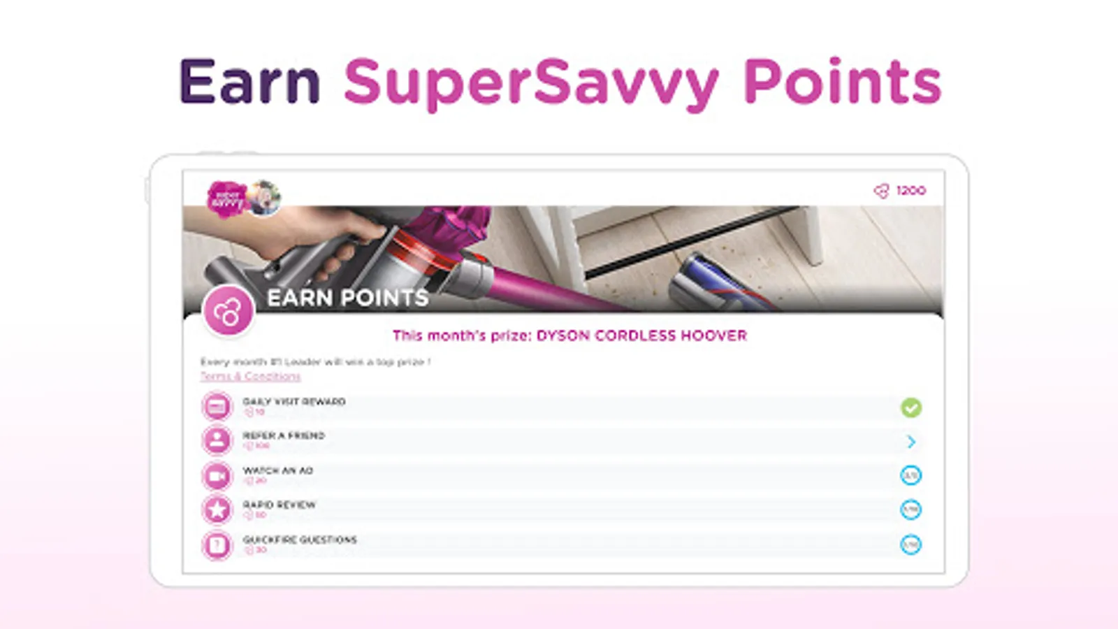 You can also earn SuperSavvyPoints to be in with a chance of winning our premium monthly prizes, including Amazon vouchers, top household appliances, fun experiences for the whole family, or luxury experiences just for you!馃ぉ