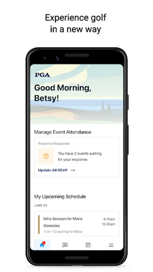 The MyPGA app connects golfers with PGA Coaches, building a foundational relationship with a sport that can be played for a lifetime. Start your golf journey today, with an app that connects you to Coaches and the experience of Private Lessons, PGA Jr. League, and group golf events.