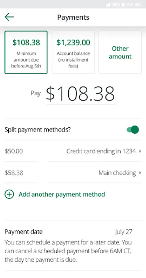• Make a payment, schedule a payment, split a payment across different payment methods, or even pay in cash (Powered by PayNearMe)!