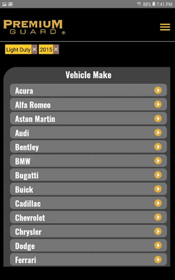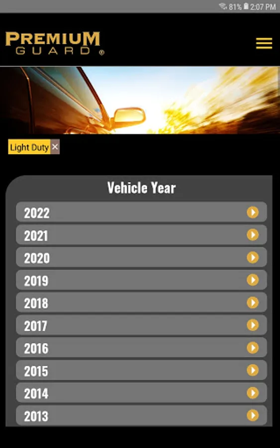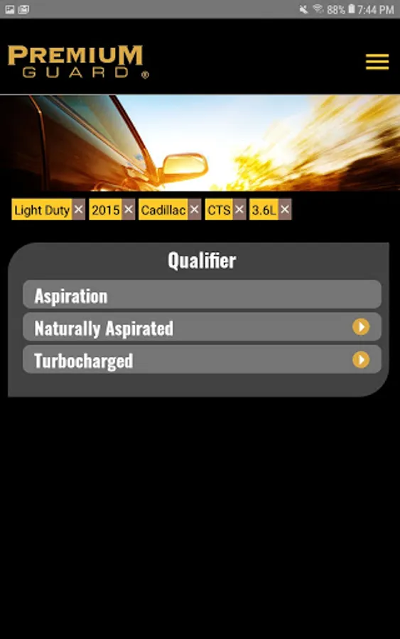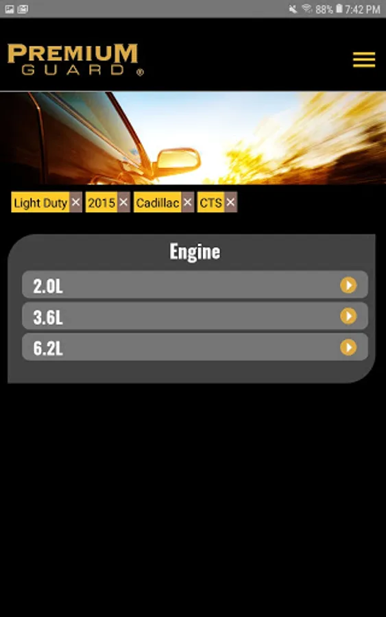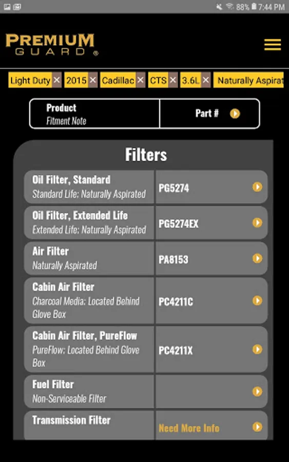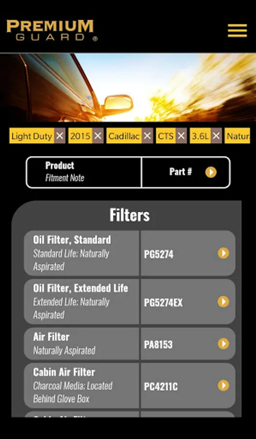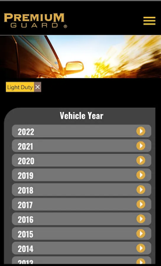 Choose the classic “Search By Vehicle” lookup to search by your vehicle’s year, make, model, and engine or switch to the updated “Dynamic Search”. With the dynamic search box, you can search for your vehicle by typing part or all your vehicle’s description and selecting from the suggestion list. You can also use the dynamic search box to enter a Premium Guard part number to get to the product information page or enter an OE or competitor part number to interchange it to a Premium Guard part