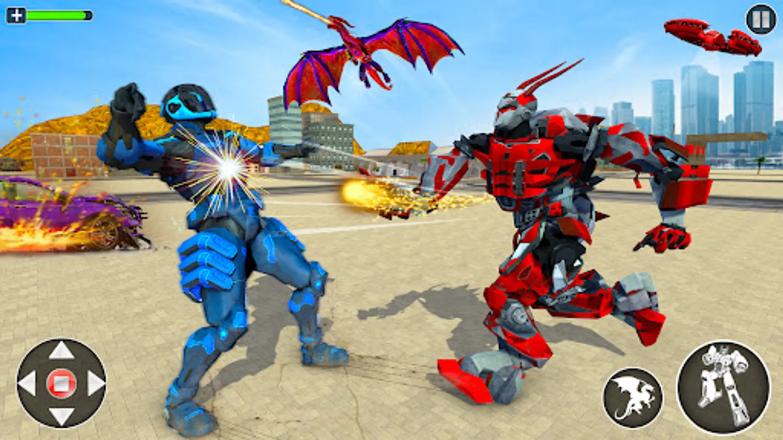 You can also enjoy car robot truck transformation in this Flying Dragon Robot Game. this is highly interesting transformation car robot into dragon and dragon robot into car robot. Fight with warriors as fly and hit them with fire from mouth. Dragon robot can turn into car and race fast and fight with monsters. Army Dragon robot car transforming game is endless source of fun turning into bike robot. I hope so you will love this futuristic robot simulator.