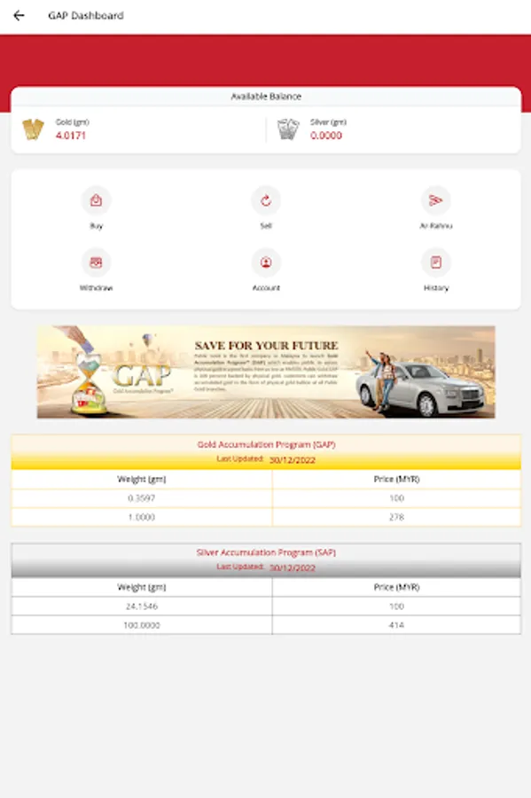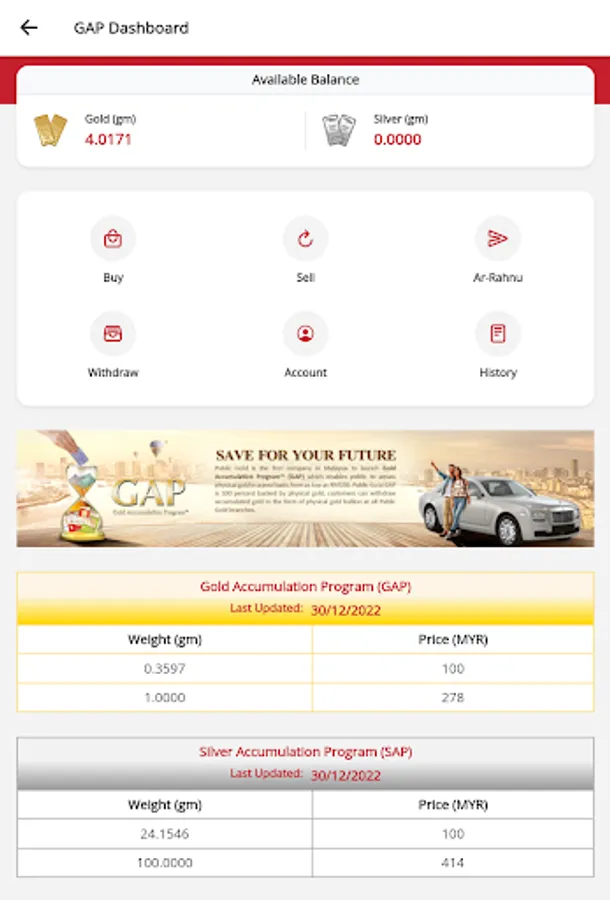 Public Gold application allows you to keep up to date to the live price of Gold, Silver, Dinar and more.You are also able to book the products and view your previous purchase.
