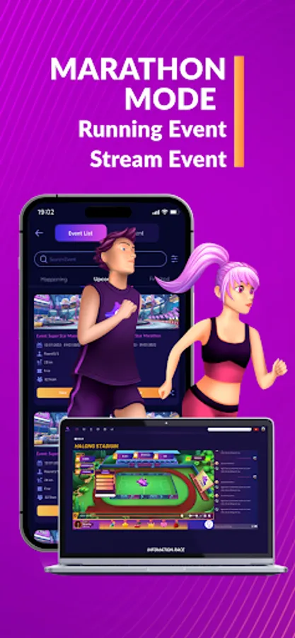 You can choose solo mode for daily running and health improvement. At marathon mode, you can register marathon events and run with a team, in one or more rounds to get points and prizes.
