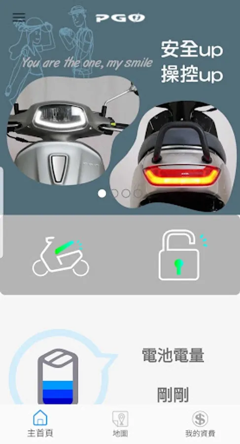 PGO and Gogoro Network cooperated with PBGN electric vehicles to launch a dedicated APP application. The PGO EQ APP can provide the owner to set various personalized functions, such as: speed limit reminder, front and rear light delay off, etc .; also available on the homepage Proactively inform the battery of the remaining amount, provide search for battery exchange stations, automatically unlock, automatically open the car, and so on.