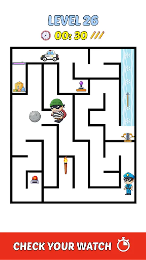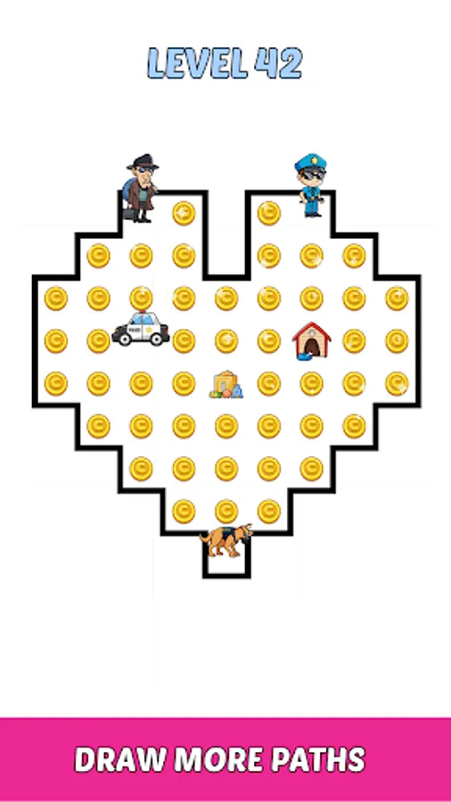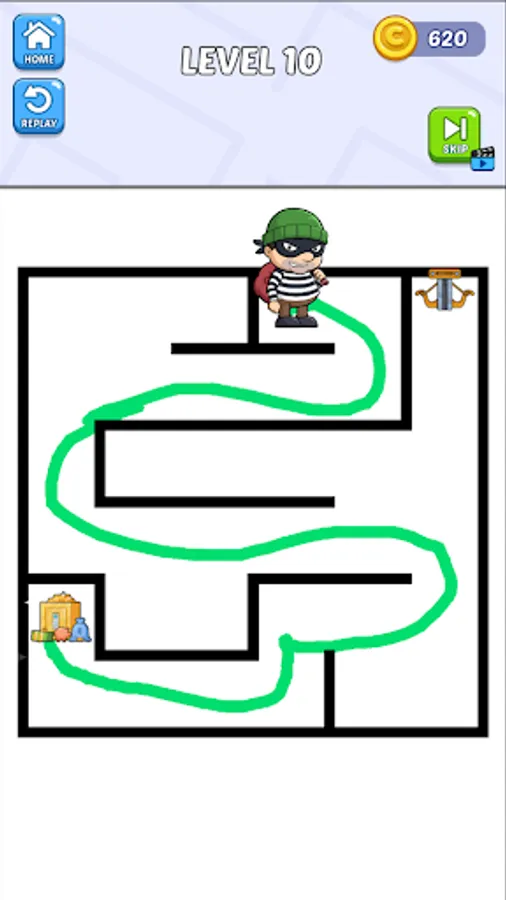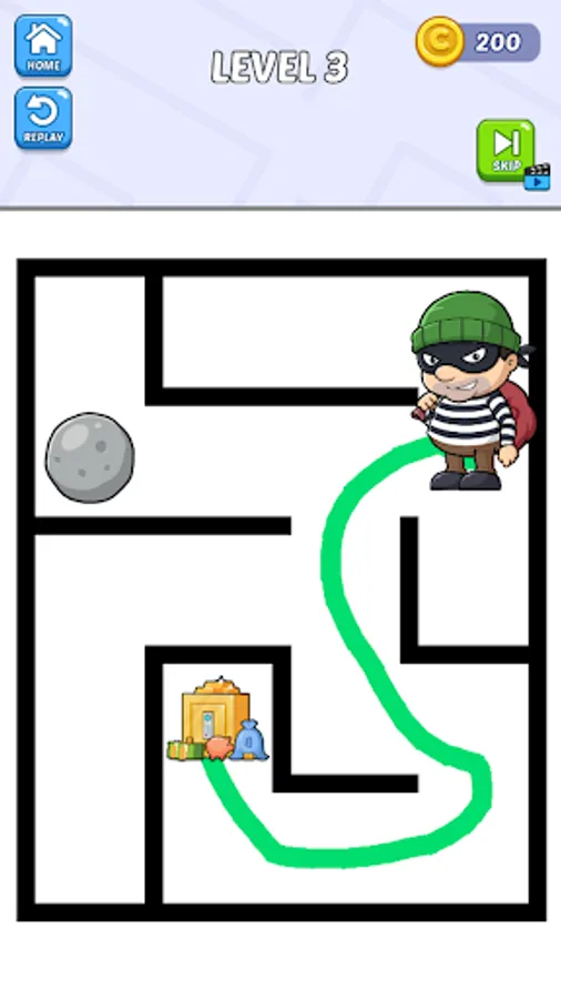 The gameplay is simple yet challenging. Tap on the thief to start drawing paths and find the best way to reach the target while avoiding obstacles along the way.