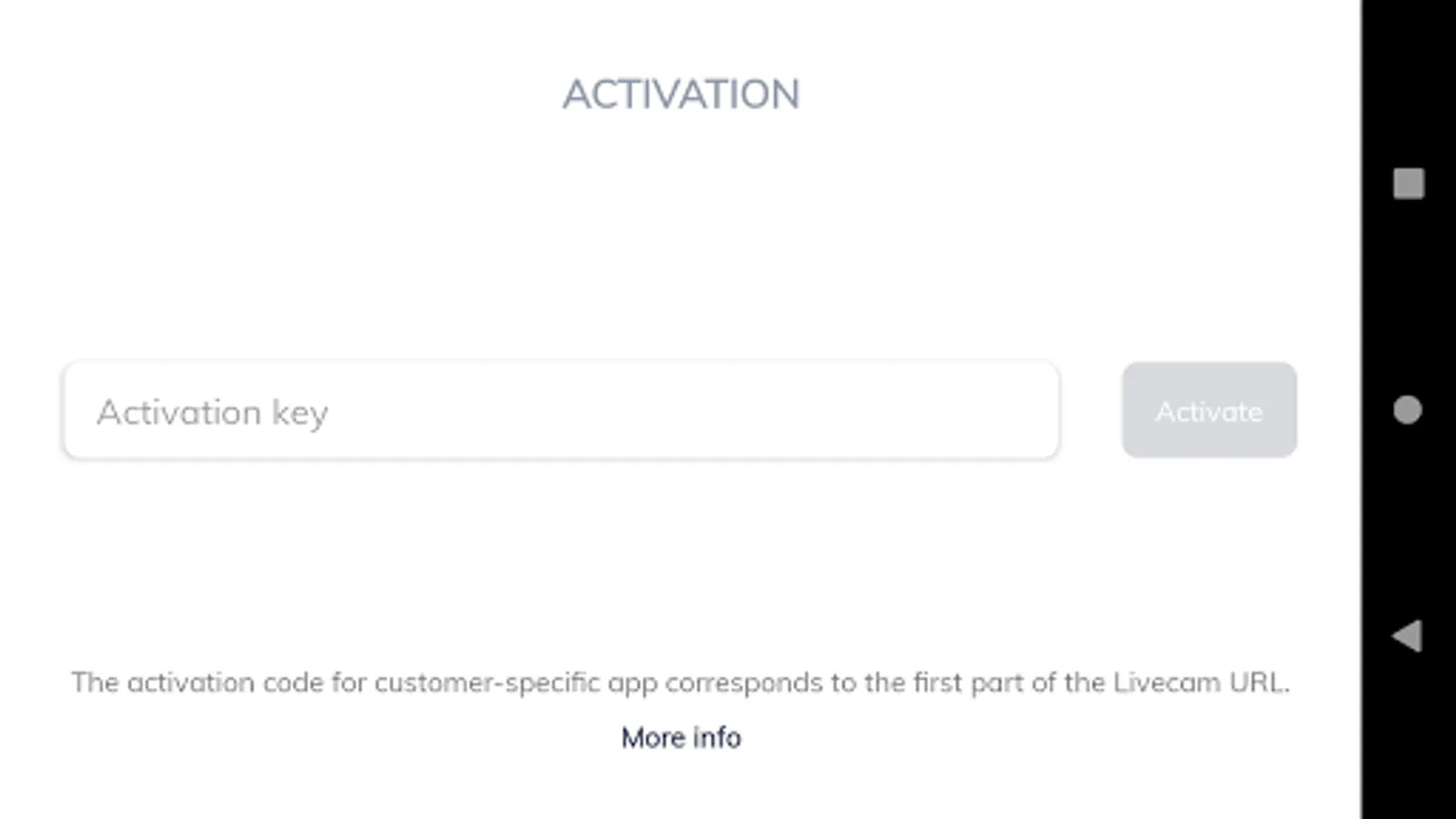 Access directly selected Livecams by entering the activation code represented by the customer name.