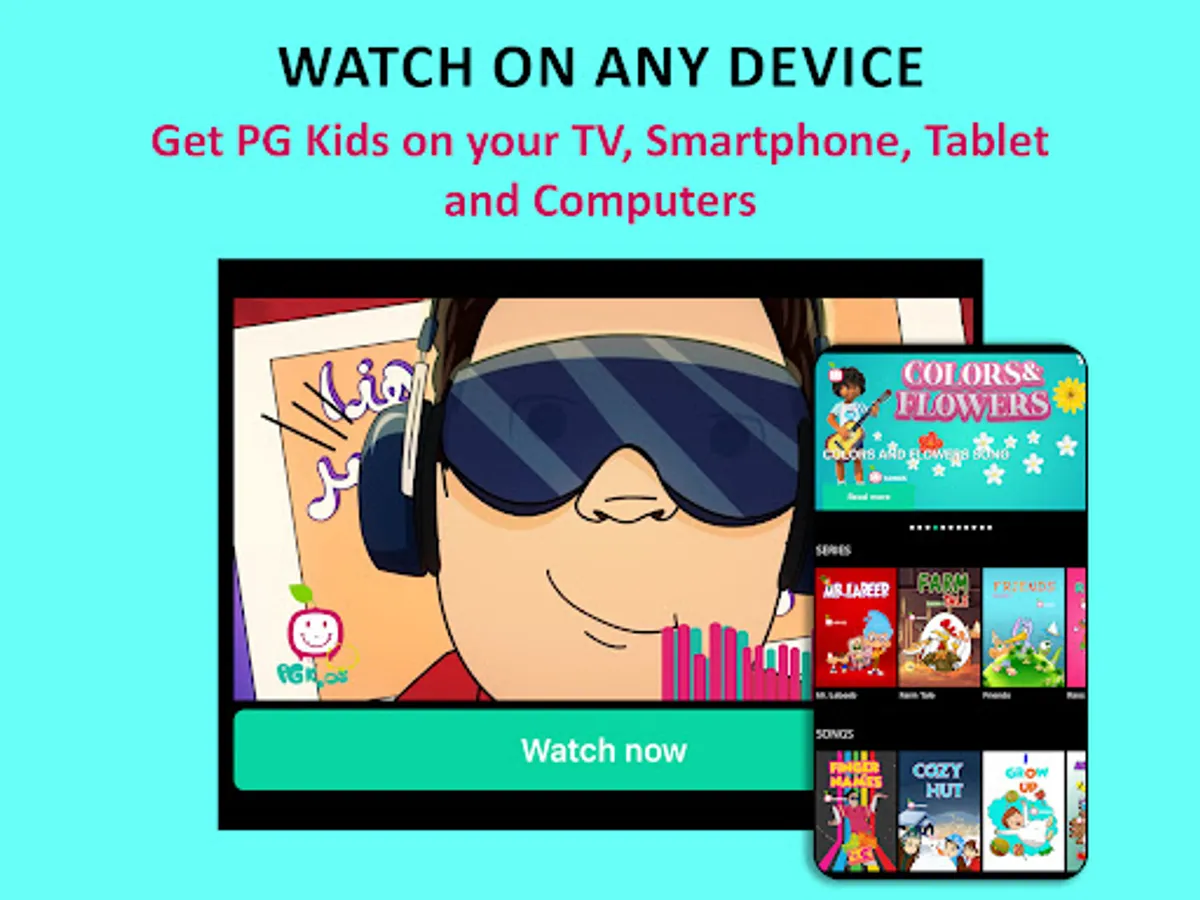 Explore plenty of series and songs, share with your friends. Watch PG Kids on your Mobile, Tablet, Laptop and Smart TV.