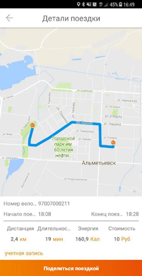 If the blue signal on the bike is on, then the bike is ready to ride! Good cycling! It is advisable to leave a bicycle along the bicycle paths of the city of Almetyevsk in special parking lots. Read more about recommended routes for cyclists on go-bike.co