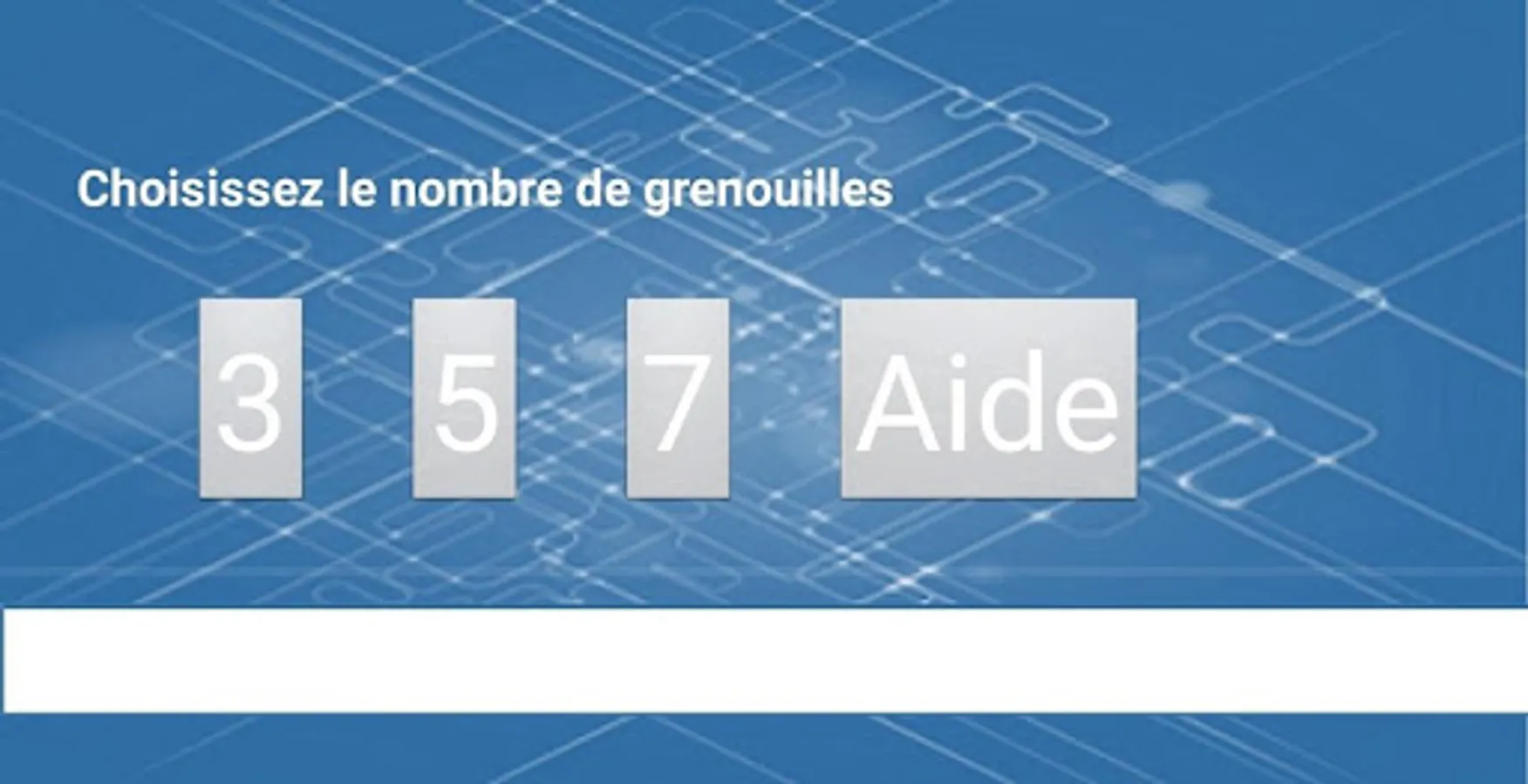 The game consists in making frogs cross a river. Those on the right go to the left, those on the left go to the right.