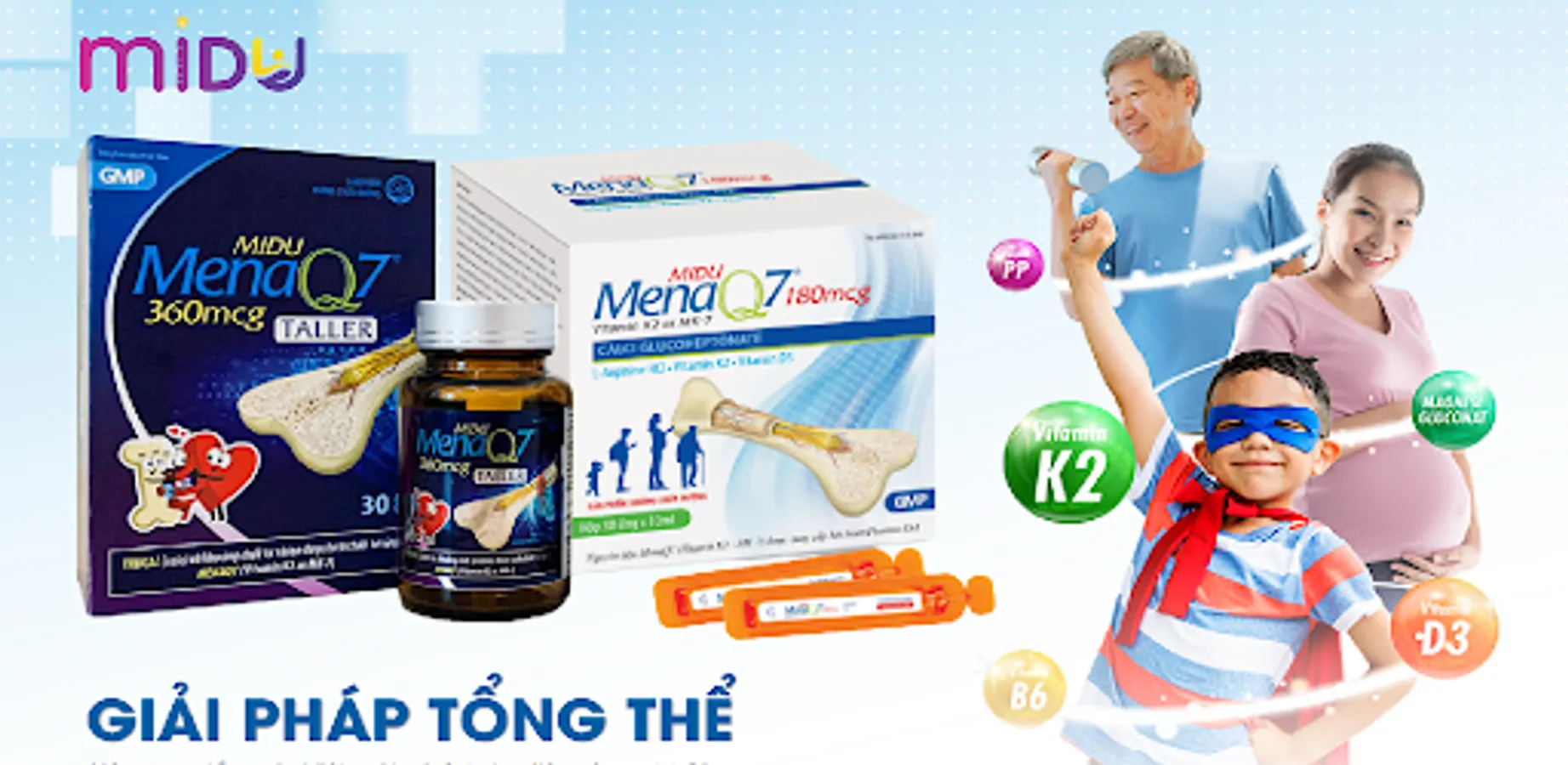 Midu MenaQ7 - Product to increase height: 1m52 exclusively introduces Midu MenaQ7 - a unique formula supplemented with vitamin K2 (as Menaquinone-7) and other key nutrients. Midu MenaQ7 helps to enhance calcium absorption and ossification effectively, creating favorable conditions for height growth and strengthening bone health.