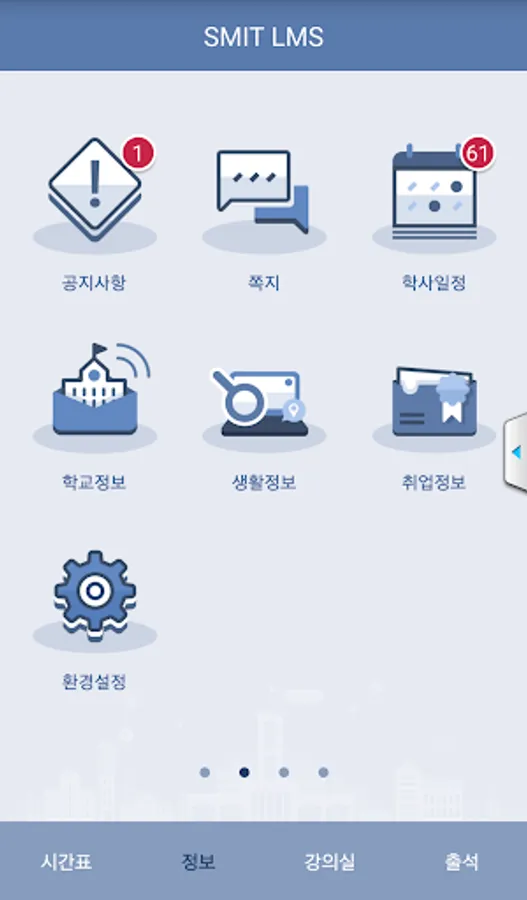 SMIT LMS App is a program that is linked with the Seoul National University Graduate School of Media Management Bachelor's program the following functions.