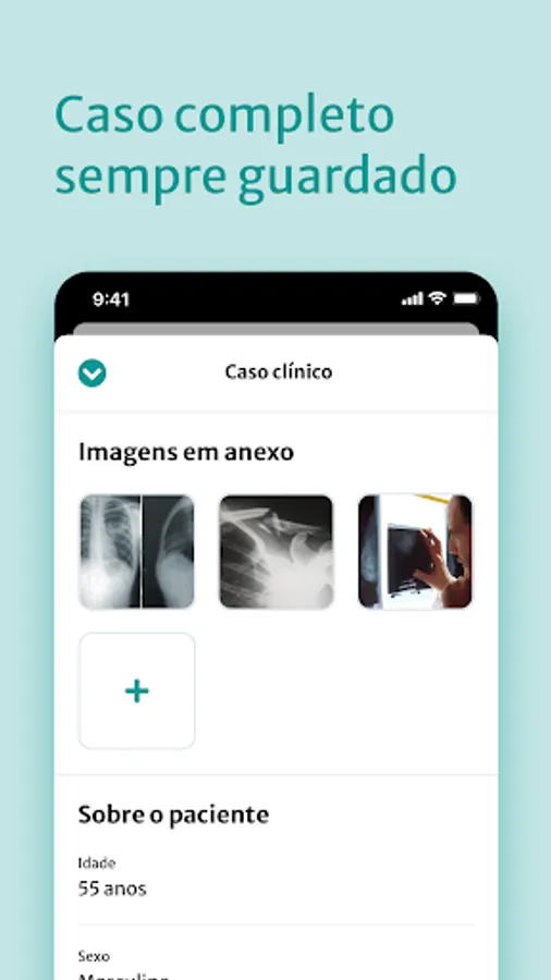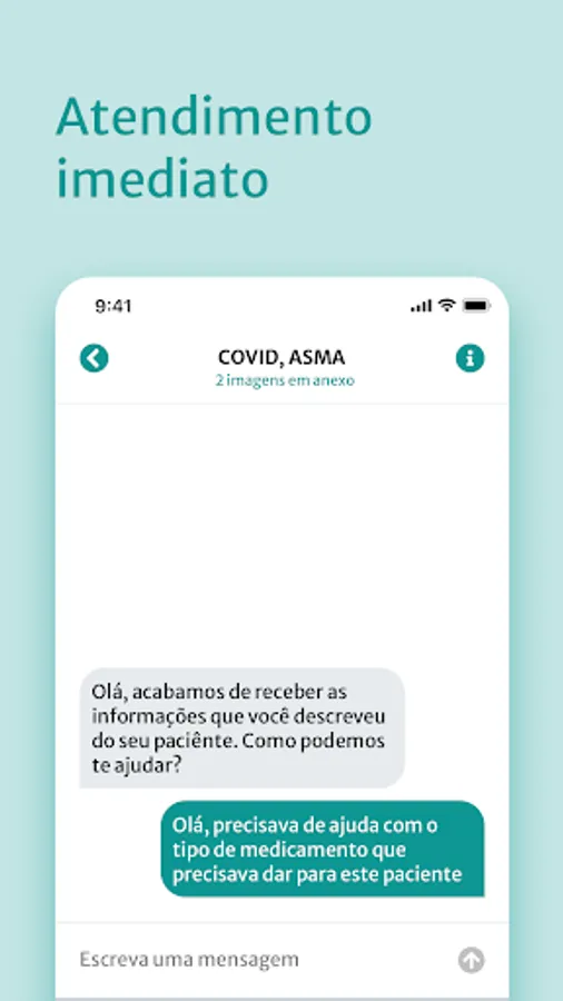 When creating a new case, first, the patient's vital data, age and comorbidities are passed, then it is possible to attach images to exemplify the case (Rx Thorax, ECG, skin lesions, etc.) and, finally, a text box is opened that allows live exchange of messages with the medical team on duty who will give you all the support you need to conduct any shift anywhere. You are no longer alone in your shift, we are with you your entire shift.