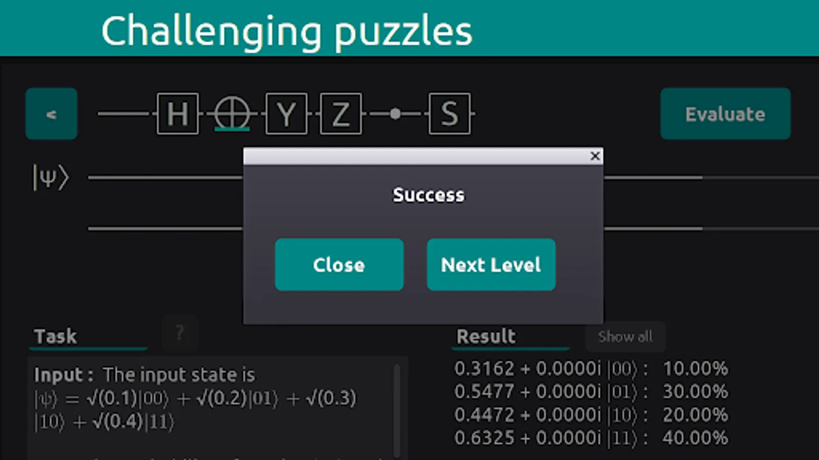 Puzzle game about quantum circuit and quantum logic gate. Learn the basic of quantum computing through solving puzzles and discover the awesome world of quantum mechanics.