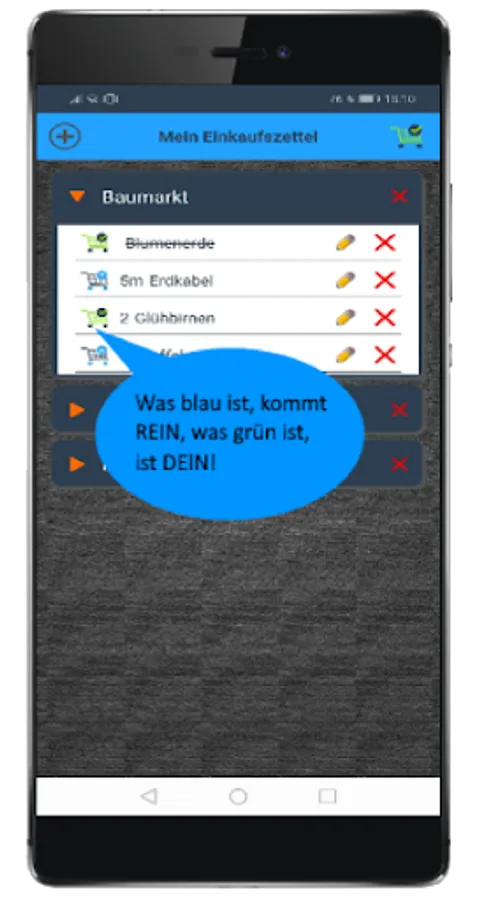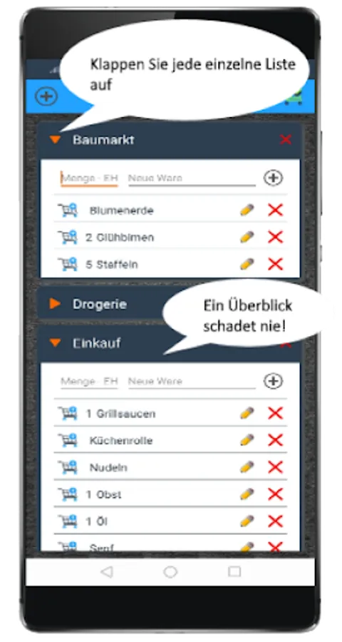 Paper notes are out of date! Create your own shopping lists on one device. Because of our clear overview, it is easy to find your product in the store.