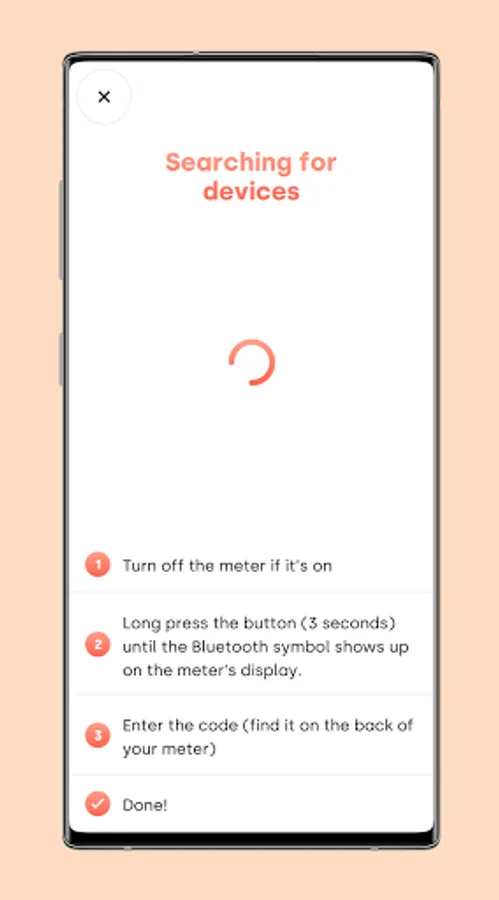 * Sync your Roche Accu-Chek device with the app via Bluetooth