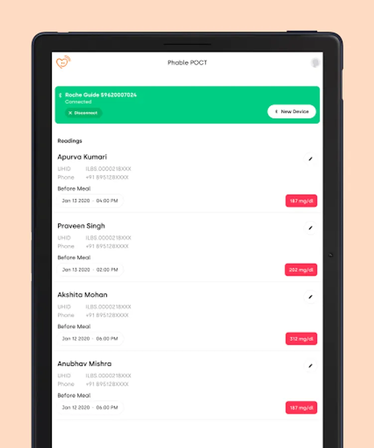 With three simple steps you can connect & sync your device with the Phable-Roche POCT