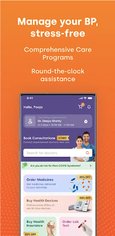 Placing medicine orders is easy, with over 22000 pincodes served across 4000 Indian cities. Simply click a picture to upload your prescription or ask a doctor on our platform to generate a digital prescription. Place monthly medicine orders and get great offers on diabetes, blood pressure and other essential medicines. Use the uploaded prescription to get regular reminders on diabetes or blood pressure diet and tracking.