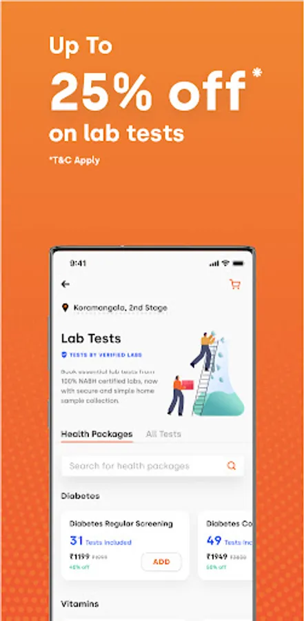 Stay safe at home and get your lab tests done regularly. Through Phable, you can get the best prices for a wide range of tests and packages, get full body checkups, check blood sugar for diabetes management, or blood pressure for hypertension management.