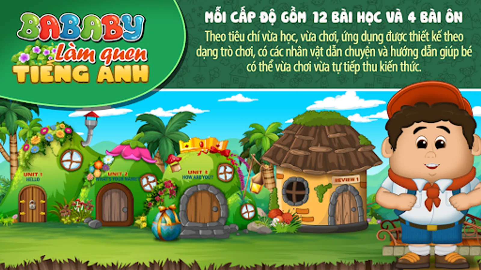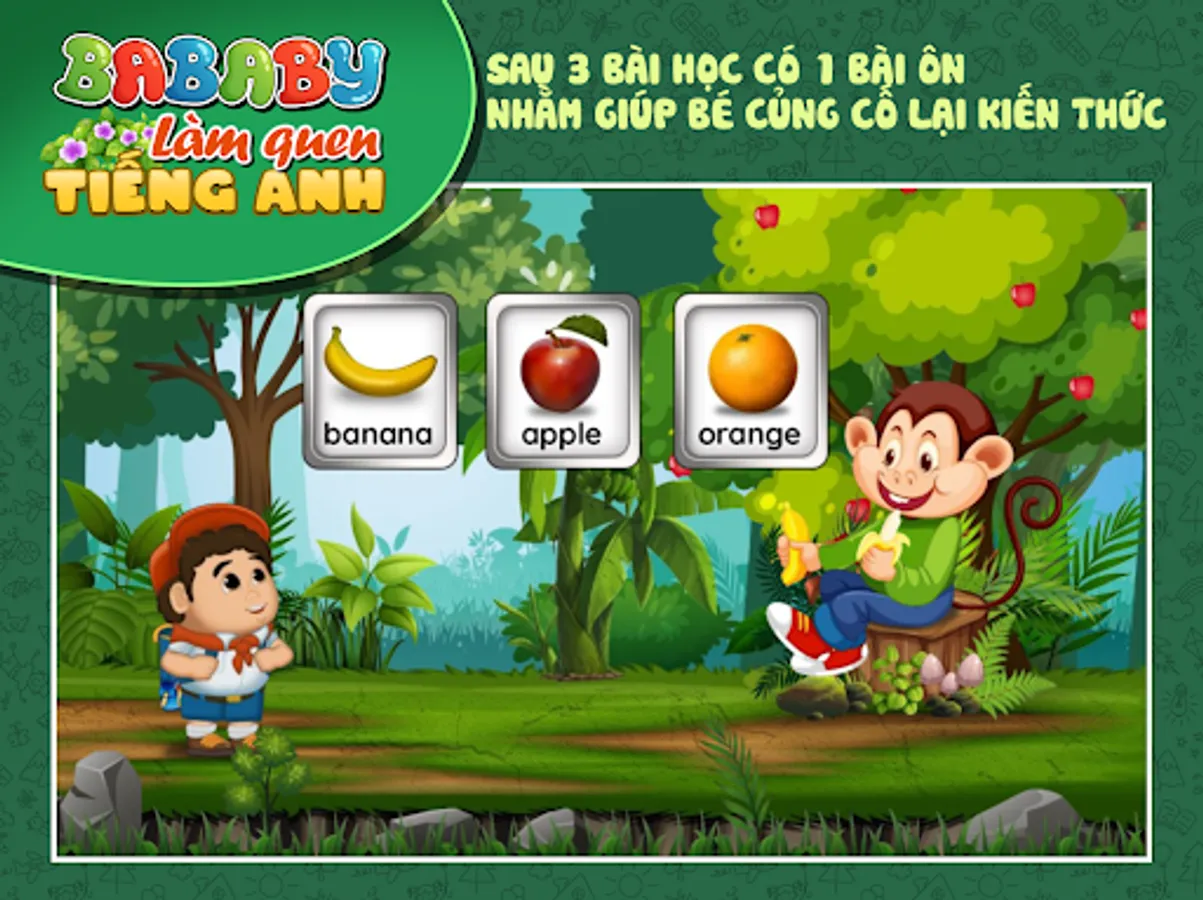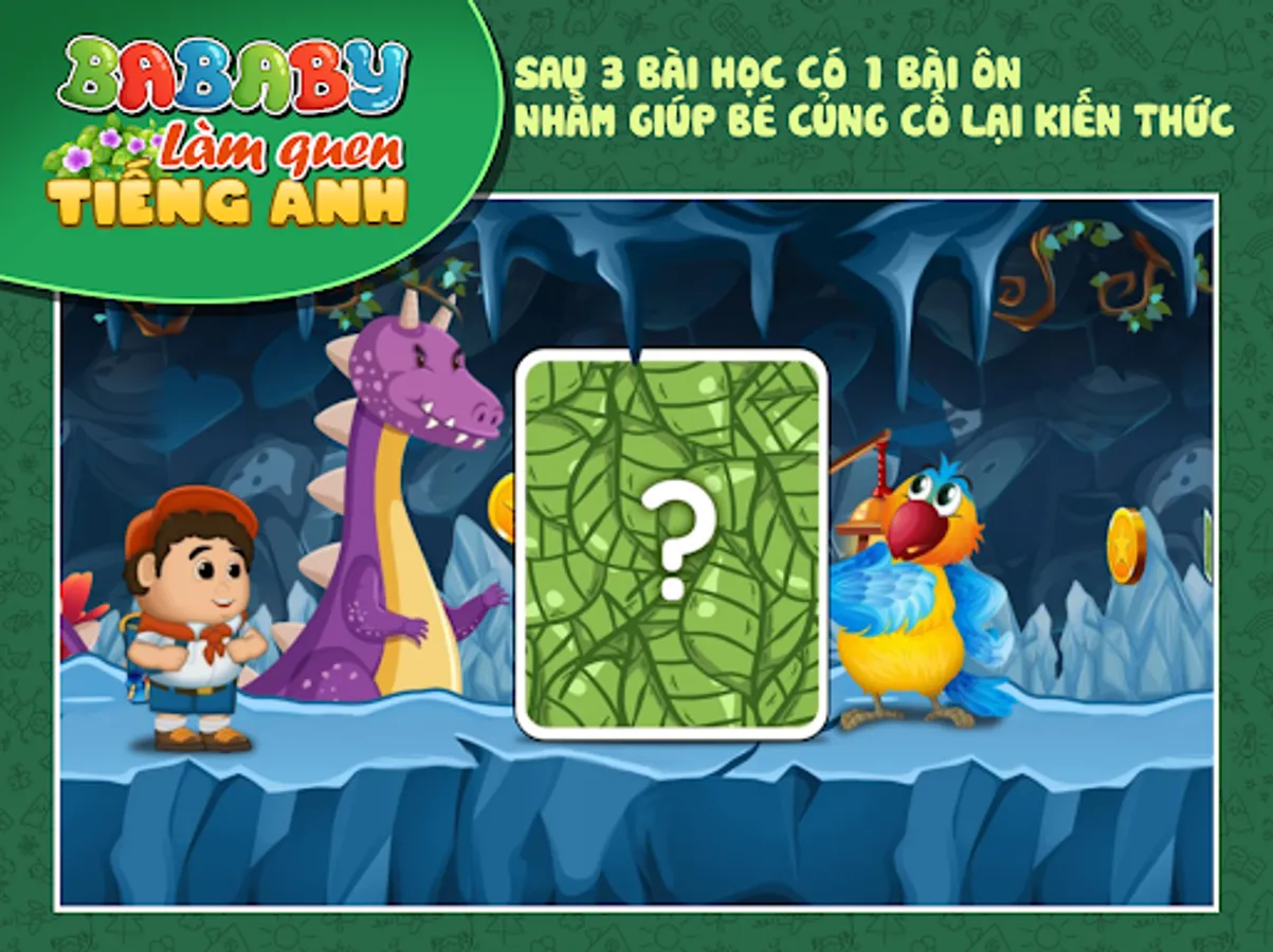 According to the criteria of both learning and playing, the application is designed in the form of a game, with characters that narrate and guide the child to be able to play and acquire knowledge by himself. The application focuses on listening and speaking English with a high frequency of repetition of words to help children become familiar and easy to remember. At the preschool age, the child is not yet literate, so parents should not force the child to remember the words, the words shown in the program are only meant to help parents or teachers to follow easily.
