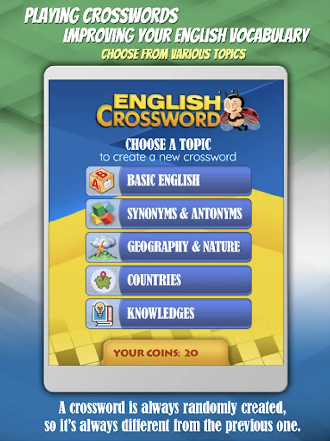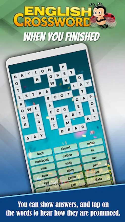 Enjoy solving the crossword game and improve your English vocabulary and more.